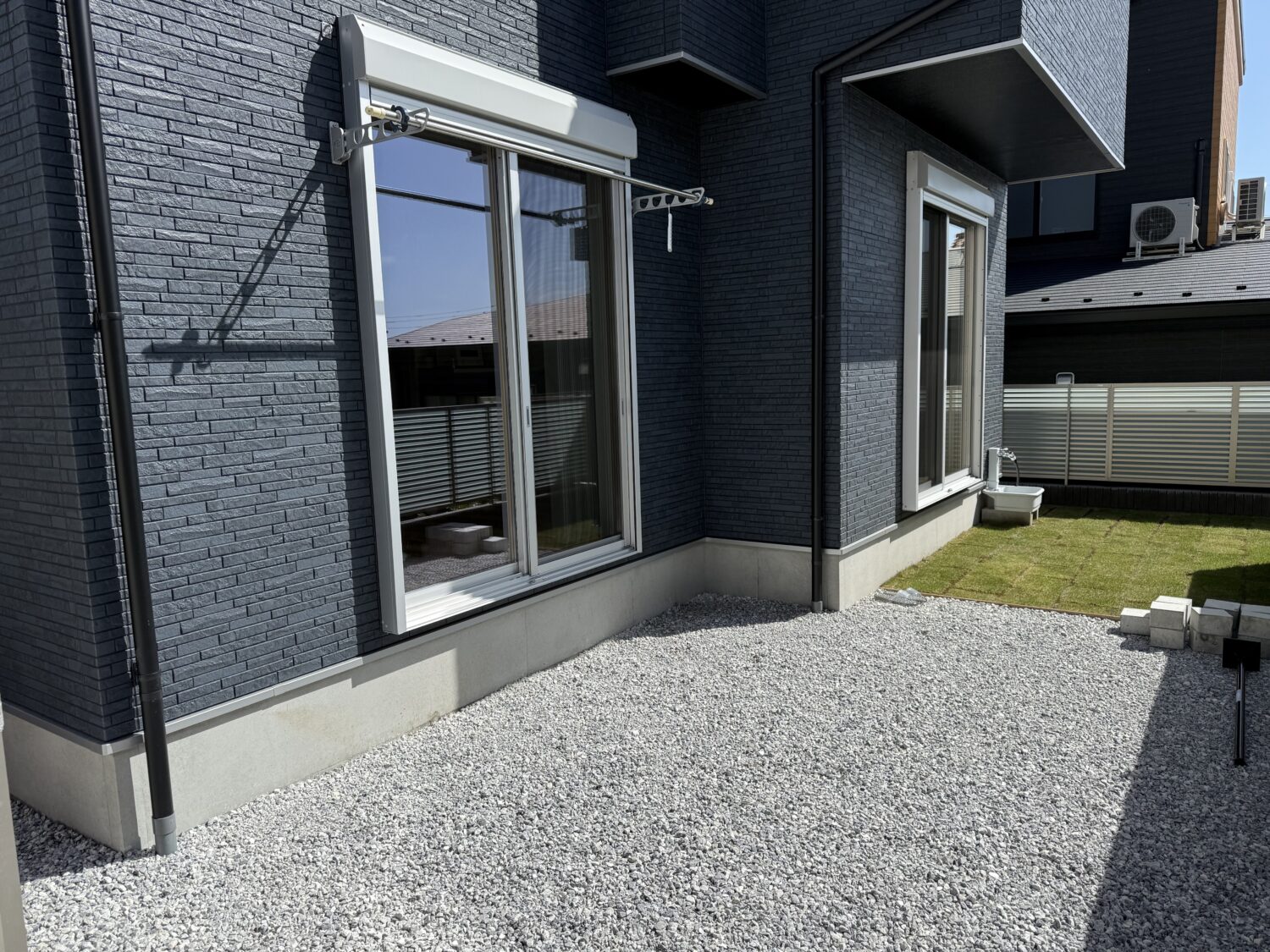 洗濯物を干す場所として、庭でBBQをする場所として、お子様の遊び場として、ご活用いただく予定です。